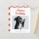 Nosso Cartão de Natal de Pet Photo de orçamento se espalha sem quebrar o banco. Ele apresenta "Feliz Howlidays" em um roteiro festivo vermelho escrito à mão, combinado com estrelas e pontos deliciosos desenhados à mão. O verso ostenta uma xadrez vermelha e bege-tartã. Perfeito para o comprador de férias com orçamento.