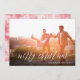Feliz Cartão com fotos de Natal em branco. Sua foto no verso ou o padrão atual de apoio. Lindo estilo de roteiro de caligrafia. Estilo de inscrição. Grande design de fotografia. O padrão traçado pela mão vermelha e branca.