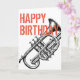 Feliz cartão de aniversário que mostra um Cornet a explodir saudações.