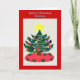 Árvore de Natal colorida com uma estrela brilhante no topo, ornamentos, canas doces, e JOY escrito em uma saia seca vermelha com bagas vermelhas e folhas holly verdes. Um cartão de Natal adorável para uma criança dar às suas Mamães especiais! -Clique em PERSONALIZAR TI para editar caixas de texto, se desejar. Artefato original e Carta Verse © 2012 TamiraZDesines.