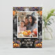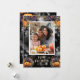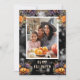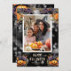 Cartão de Dia das Bruxas com foto personalizada e pistas vestindo chapéus pretos na frente e atrás. Personalize facilmente este cartão de Dia das Bruxas com a sua foto e o nome da família. Esta bela carta de Halloween pode ser transformada em qualquer cor usando a ferramenta de personalização.