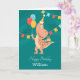 Esta Carta de Aniversário Feliz Dobra uma ilustração de um bonitinho engraçado Dinossauro vestindo chapéu de aniversário e segurando bolo com três velas luminosas e três balões coloridos. Cartão de excelente para o aniversário de criança! Você pode personalizar facilmente o texto (saudação e nome) na parte inferior da placa usando as ferramentas online do Zazzle. Se precisar de ajuda para personalizar este cartão, não hesite em contactar-me através do Zazzle, por favor.