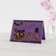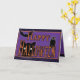 Cartão de saudação de Dia das Bruxas Feliz e Festivo apresenta um design de estilo vintage. Há um gato preto assustador, um morcego voador e uma coruja para cumprimentá-lo. Personalize o texto da dentro para desejar a alguém um Feliz Dia das Bruxas. Cartão de Halloween perfeito para filho, filha, amiga, neto, neta, membro da família, professor ou alguém especial.