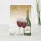 Uma garrafa de vinho verde com dois vinhos tintos em óculos e confete para o 17º aniversário de casamento.
