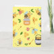 Deseje um feliz aniversário ou um Feliz Dia das Abelhas com este Cartão de aniversário Cute com uma abelha Cute na frente e um padrão com Abelhas, mel e flores nas costas. Você pode excluir o dentro se quiser que ele seja vazio para escrever. Design neutro em termos de gênero. Vem em diferentes cores. Veja as outras ideias de presentes de aniversário na "Coleção de Bee Cute", faça-a coesa, coordenada e pessoal, personalizando a design de abelha super fofa.
