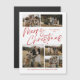 Feliz Cartão Magnético de Foto para Caligrafia de Natal apresenta um roteiro calítico moderno na frente, juntamente com cinco fotos, e uma xadrez de Natal festiva nas costas.