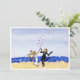 "feliz casamento" - um design criado por Rebecca Duffy Bush na costa da Carolina do Norte. Com um casal alegre dançando na areia com as ondas atrás deles. perfeito para cartões de agradecimento, anúncios de save the date, convites de casamento.