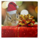 Este lindo pedaço vestindo um chapéu de Papai Noel está saindo atrás de um brilhante presente de Natal vermelho e arco de ouro para lhe desejar "férias de calça" para a temporada.