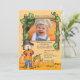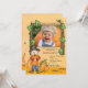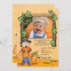 Um espantalho adorável está juntando abóboras neste convite tema do outono. As folhas de outono são coletadas aos seus pés e sua foto favorita é apresentada em um quadro de vara. Adequado para o sexo e para a idade de qualquer criança.
