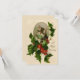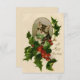 Um Natal gatinho muito feliz! Este doce gatinho é dos anos 1800, e está olhando através de um spray de folhas festivas de Natal sagradas.