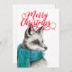 O desenho a lápis preto e branco de raposa com cachecol de cor aqua e a camada vermelha de "Feliz Natal" dão a este cartão de feriado uma sensação moderna. Adicione sua saudação sazonal pessoal ou de sua própria empresa.