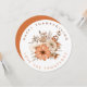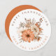 Uma na moda para enviar suas saudações de Ação de Graças a amigos e familiares em estilo circular e um belo buquê de flores e folhagem, com bagas e trigo em cores de outono de marrom, creme e laranja. Sua saudação está curvada no topo, e seus nomes curvados abaixo. Na parte de trás está um fundo marrom coordenado, com suas saudações e nomes em branco. Todo o texto pode ser facilmente personalizado com seus detalhes e outras alterações podem ser feitas se você quiser criar um plano de fundo e cores de texto por meio da opção personalizar mais.