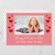 Este cartão com fotos para amigos ou família apresenta um design móvel de corações vermelhos em cada lado e rodeia sua foto digital no centro. O "Feliz dia de os namorados" é impresso abaixo da foto em um roteiro decorativo branco com o fechamento e o(s) nome(s) em uma fonte branca moderna complementar, tudo em um fundo rosa suave. Personalize o texto e a foto nos campos do modelo fornecido. Bolinhas cor-de-rosa bonitas decoram as costas. "Clique em Personalizar Mais" para alterar a cor do plano de fundo ou o estilo da fonte, a cor. Sua foto deve estar em um tamanho horizontal semelhante para preencher o espaço. Faça o upload com 300 fotos para obter a melhor qualidade de impressão.