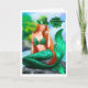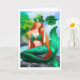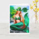 Sereia irlandesa com longos cabelos de cobre e cauda verde, top e chapéu segurando trevo