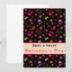 Cartão de Dia dos Namorados com corações, morangos e cerejas em um fundo preto e texto "Feliz Dia dos Namorados"