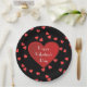 Monte uma mesa de feriado festiva com este prato de papel vermelho com estampa de coração. Este prato foi criado para o Dia dos Namorados e apresenta um design de corações espalhados com uma sobreposição de um grande coração no centro. Personalize a saudação com suas próprias palavras ou compre como mostrado.