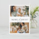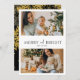 Este design de cartão festivo e elegante mostra perfeitamente suas lindas fotos da família. A design apresenta uma bela foto de família de 2 quadrados e um roteiro de "Saudações da Época" com seu nome de família e padrão dourado em floco de neve no lado de trás.