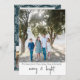 Cartão com fotos minimalista com sentimento de "Feliz e Brilho". Uma foto principal na frente e duas fotos menores, mais espaço para uma mensagem pessoal na parte de trás.