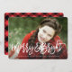 Mande alegria de férias com um cartão com fotos personalizado! Este design de cartão com fotos sazonal apresenta uma imagem de perda de cheio com uma sobreposição de fontes com letra esfregada e um padrão acolhedor de xadrez de búfalo no verso.