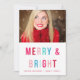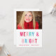 Este alegre cartão de Natal apresenta uma fonte ousada e moderna sans-serif em cores brilhantes, que vão de rosa e vermelha a espuma marinha e azul-céu. A peça central para este cartão é a sua foto! A inscrição colorida brilhante coloca-se, de fato, contra o fundo branco brilhante e coloca-o seguramente no espírito de férias!