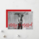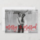 Espalhe a alegria de férias com este elegante cartão de feriado. Esta placa lisa apresenta o roteiro vermelho, com letra de mão, "feliz e casado" com fundo de neve vermelho e branco. O cartão perfeito para recém-casados. Uma versão de cartão postal e de cartão dobrado está disponível.