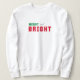 Você está pronto para celebrar o Natal em estilo com este suéter. Apresentando o texto "Feliz e brilhante" em vermelho e verde, tipografia do estilo da universidade.