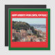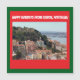 Felizes Feriados com uma bela Linha do Céu de Aquarela de Lisboa, Portugal com Ruas. O castelo de George e os edifícios pastel em Lisboa, Portugal. Por https://www.zazzle.com/store/celestesheffey #lisbonportugal