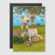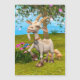 Renderização digital 3D de uma cabra de desenho animado feliz em um fundo de jardim de fantasia