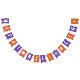 Feliz Bandeira de Bunting Fantasma Laranja e Roxo do Halloween, Esta faixa festiva de bunting "Feliz Halloween" apresenta cores laranja e roxa, texto decorativo fantasma fofo. Cartas projetadas.
