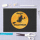 Feliz papel de tecidos do Halloween Dif com imagem de bruxa contra uma lua amarela cheio e as palavras Feliz Halloween.