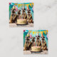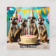 São Quatro Meerkats, Três Chapéus De Aniversário A Vestir E A Ficar Atrás De Um Bolo De Aniversário Com As Palavras Feliz Aniversário. Este Design Tem Uma Frente E Uma Parte De Trás Personalizáveis.