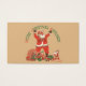 Ilustração vintage de design de Natal com um Papai Noel alegre com sua longa barba branca e usando um chapéu. O Papai Noel está de pé com os braços para cima e brinquedos infantis (cavalo, boneca, palhaço e uma bola) ao seu redor gritando Feliz Natal a Todos!