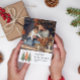 Árvores de Natal Felizes As Cartões de natal de Natal Simples mostram sua foto favorita em um fundo branco com o texto "Felizes Feriados" na tipografia do roteiro preto na moda. Personalize editando o texto nas caixas de texto fornecidas. Perfeito para o Natal enviar para amigos e família. Disponível como cartão de feriado em papel físico e como um download digital instantâneo imprimível. Elaborado por ©Evco Studio www.zazzle.com/store/evcostudio
