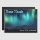 A multi-colored, fractal rendering of the aurora borealis, or Northern Lights, superimposed on a digital painting of snow-covered mountains. Italian text reading, "Buon Natale" appears in glowing blue and white. Add your own additional text.