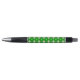 Esta caneta espetacular apresenta um desenho fofo de um broche verde com grandes olhos e um sorriso. Tem folhas verdes escuras ao redor do exterior e uma dentro verde-paler.