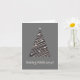 Cartão de Natal húngaro (karácsonyi üdvözlőlap) com mensagem de Natal húngara (Boldog Karácsonyt, Feliz Natal em húngaro) e ilustração de árvore de Natal. Inclui mensagem de Natal húngara dentro do cartão, 'Boldog Karácsonyt'.