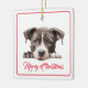 Feliz Natal do Ornamento Cão-Cerâmico. Um Enfeites de natal divertido para Cartões de natal do cachorro para a família e amigos. Personalize por trás. Doce Puppy na frente.