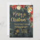 Um cartão de Natal elegante e elegante com um lado e um cartão semidiâmico de 5 por 7 polegadas. Uma clássica cor verde-escura pintada de fundo de floresta com flores vermelhas de férias e verde verde-verde-verde e uma lanterna romântica, com caligrafia manuscrita em ouro brilhante e um borrão de flocos de neve delicados, desejando aos seus beneficiários uma temporada de férias e feliz ano novo alegres. A parte de trás do cartão diz Feliz Feriado e assinou com seu nome de família.