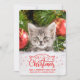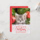 Adicione um toque divertido às suas cartões de natal com este cartão de saudação fofo e personalizável com uma fotografia personalizável do seu gatinho, com uma legenda adorável que diz "Natal meowy e um ano novo arrojado", em uma inscrição vermelha festiva e moderna decorada com orelhas de gato e flocos de neve.