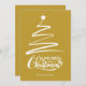 Feliz Natal em letra estilo script com um esboço de árvore de Natal e estrela no design. Esta cor de fundo do ouro é projetada para que você possa mudar a cor do plano de fundo e também digitar o nome da sua família.