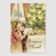 Cartão magnético com natais vintages gráficos da Hungria, 1902. Cores leves e cena festiva com duas crianças pequenas lendo uma carta enquanto elas estão ao lado da vela acesa árvore de Natal. Está nevando lá fora. Esta versão vem com o desejo de Natal francês "Joyeux Noel" .