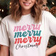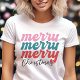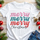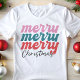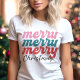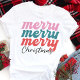 Celebre a temporada de festas com esta camiseta colorida e alegre "Merry Merry Merry Christmas"! Com letras divertidas em rosa, azul-turquesa e vermelho, este design é perfeito para quem adora espalhar alegria durante as festas de fim de ano. A escrita moderna e as cores vibrantes tornam-na ideal para festas, passeios casuais ou como um presente atencioso para amigos e familiares. Esta camiseta combina diversão e estilo, tornando-se um item indispensável no seu guarda-roupa de Natal. Esteja você participando de um evento de Natal ou apenas se preparando para o espírito natalino, este design certamente irá fazer você se destacar!