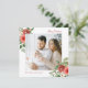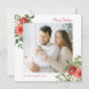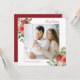 Este belo cartão de Natal apresenta elegantes flores vermelhas com cor d'água com bagas ocas, pinecones e verde sobre fundo branco com uma foto quadrada. A parte de trás do cartão está vermelha. Localize itens correspondentes na Coleção de Natal Botânico de inverno Vermelho Feriado.