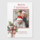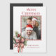 Design festivo e divertido com um molde fotográfico em uma armação de cana doce com um buquê de santo de inverno e verde amarrado com um arco listrado de cana doce. Apresenta saudação Feliz de Natal em uma fonte personalizada exclusiva.