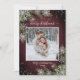 Baseado no meu melhor Casamento no inverno Invitation Suite, este cartão de Natal quente e acolhedor de madeira de burgundy design apresenta sua foto favorita de casamento, e é decorado com flocos de neve com brilho prateado e galhos de pinheiro de aquarela, e uma textura de xadrez de búfalo burra e preto. Personalize com sua foto, nome e ano. Entre em contato com o designer para obter produtos correspondentes ou variações de design e veja o Holiday Suite aqui: https://www.zazzle.com/collections/rustic_burgundy_silver_winter_plaid_wood_christmas-119954909896873769 Copyright Anastasia Surridge for Elegant Invites, todos os direitos reservados.
