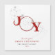 Feliz Natal em Vermelho contra flocos de neve prateados com sua incrível foto embutida na palavra Joy. Insira seus detalhes pessoais e ele vai para todas as suas pessoas favoritas nesta temporada de Natal!