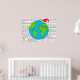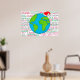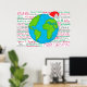Esta poster é impressa com um globo desenhado à mão com um chapéu festivo de Santa Cláusula. O pano de fundo apresenta o ditado "Feliz Natal" em vários idiomas, incluindo inglês, espanhol, francês, russo, xhosa e muito mais!