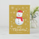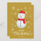 Cor de fundo do ouro Feliz Natal com roteiro decorativo do rico e design de boneco de neve. Este cartão de Natal foi projetado para que você possa mudar a cor do fundo. Você também pode digitar seu nome de família ou removê-lo se quiser apenas ter o design sem o nome. Você também pode personalizar a cor das palavras "Feliz Natal" editando este design, se quiser.