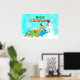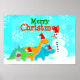 Feliz Poster de Snowman e Dinossauros de Natal. Uma pequena e fofa família de dinossauros vestindo chapéus vermelhos de Santa: ovo de dino rosa, Stegossauro verde, Diplodocus laranja e Tricerátopos azuis numa paisagem branca de inverno de neve com um feliz boneco de neve e flocos de neve que caem do céu e o texto poster de desenho animado "Feliz Natal". Este brilhante impressão de poster de Natal é totalmente personalizável, adicione seu texto e imagens! Um excelente de natal de dinossauros poster para o pequeno grande fã de dinossauros!