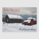 Uma cena de vitrine, rural, com um caminhão vermelho, velho e coberto de neve, sentado perto de uma cabine de ramshackle perto de Sandpoint, ID. O texto em espanhol, que lê "Feliz Navidad", também aparece em vermelho. Adicione seu próprio texto adicional.